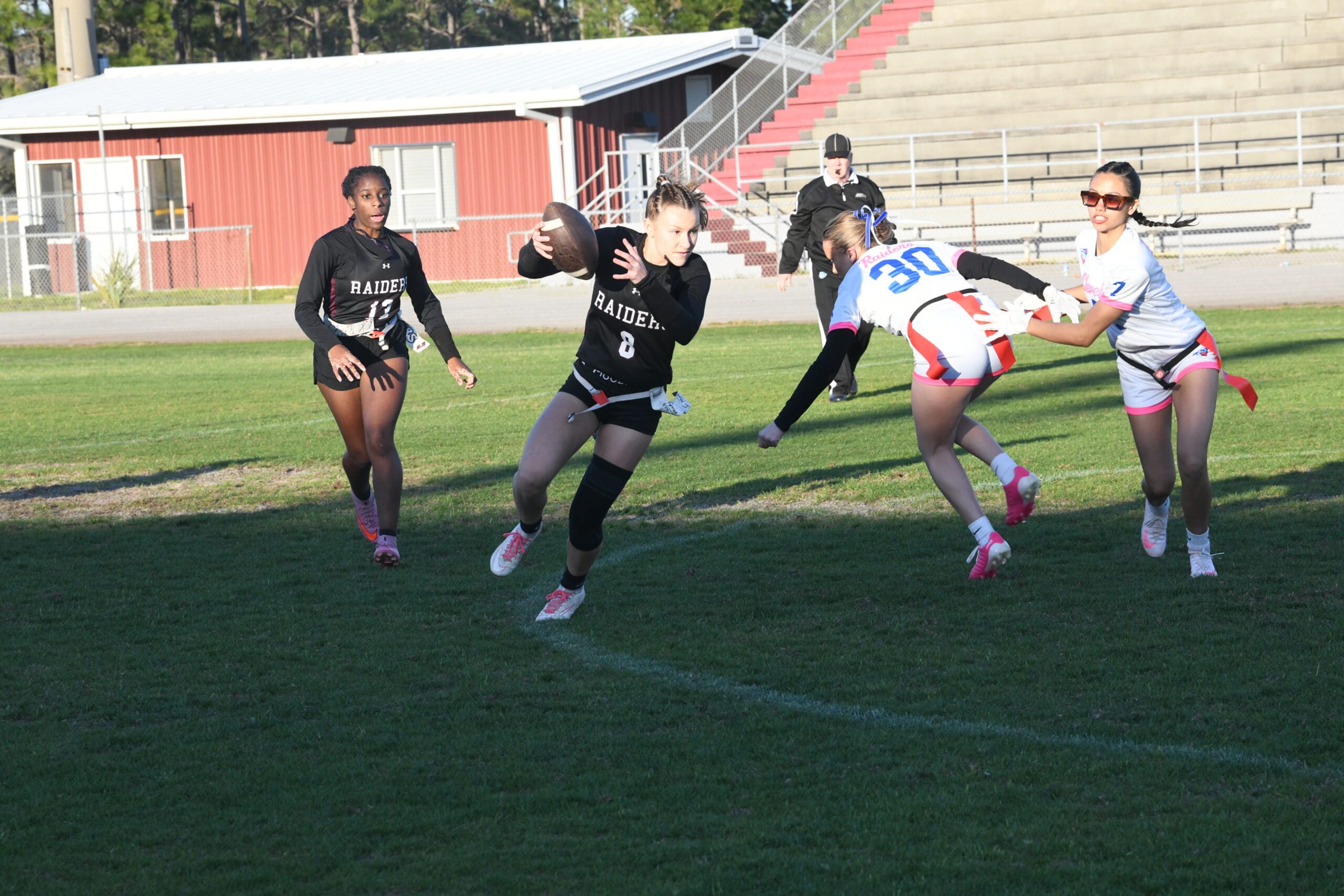 The latest win for Navarre’s flag football team was a little different as the Raiders played and defeated an out of state team for the first time in program history. The Raiders rolled to a 19-0 vic…