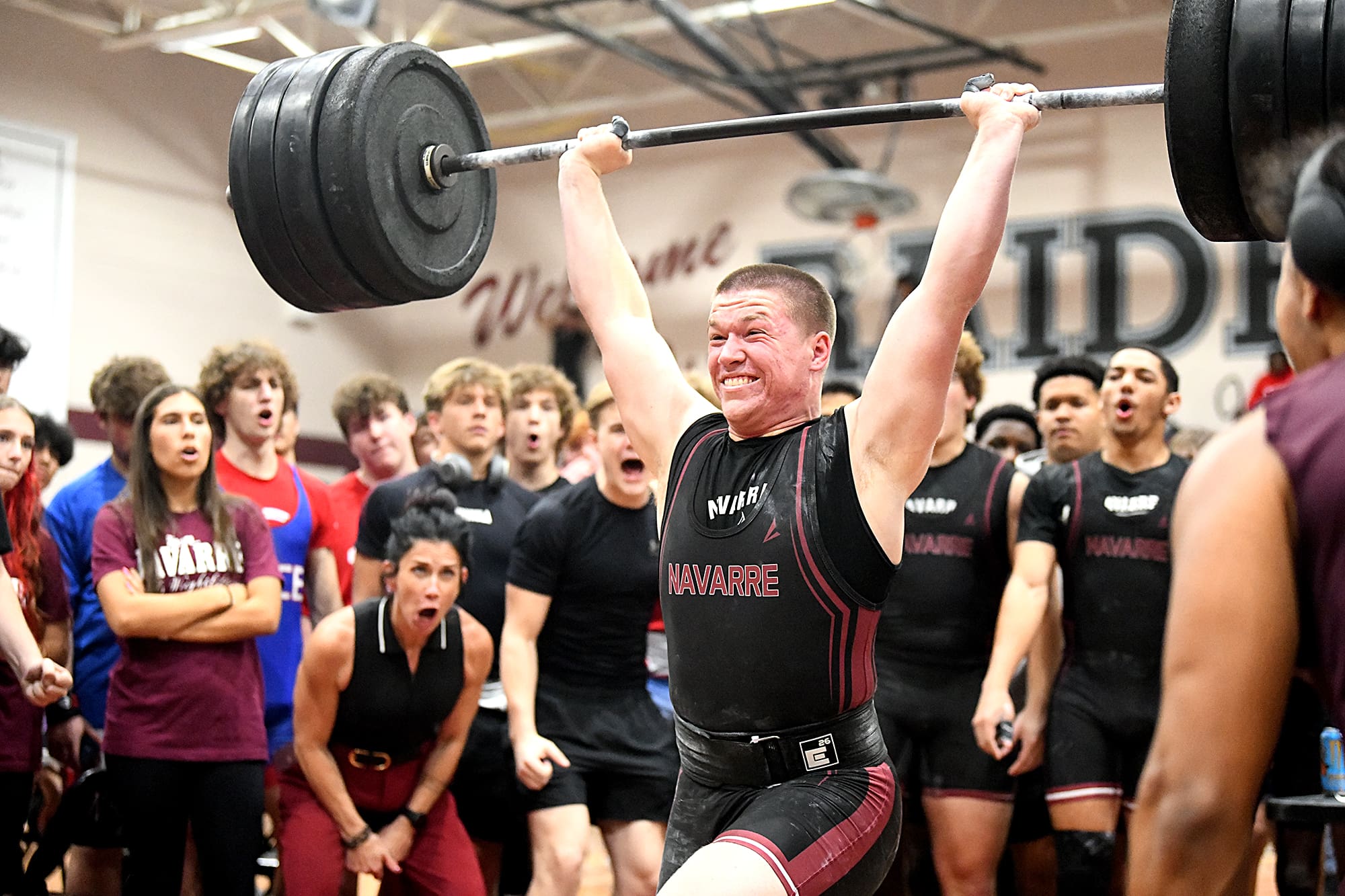 Roan Strom wasn’t going to let anything stand in the way of him breaking a Navarre invitational record in the clean and jerk. “I felt a little rough. My knee was hurting. My back was hurting, but th…
