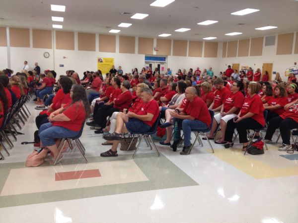 More than 300 Santa Rosa teachers and their supporters turned out Aug. 10 at Bennett Russell Elementary to push for a disputed pay increase.