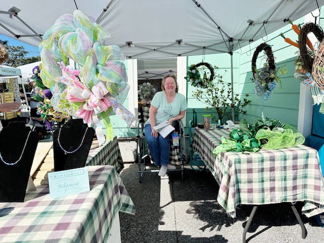 Tourists looking for the perfect something to take back home with them can find custom Navarre pillows, Navarre ornaments or jewelry made with pearls, leather and beads by artist Karen Lakin.