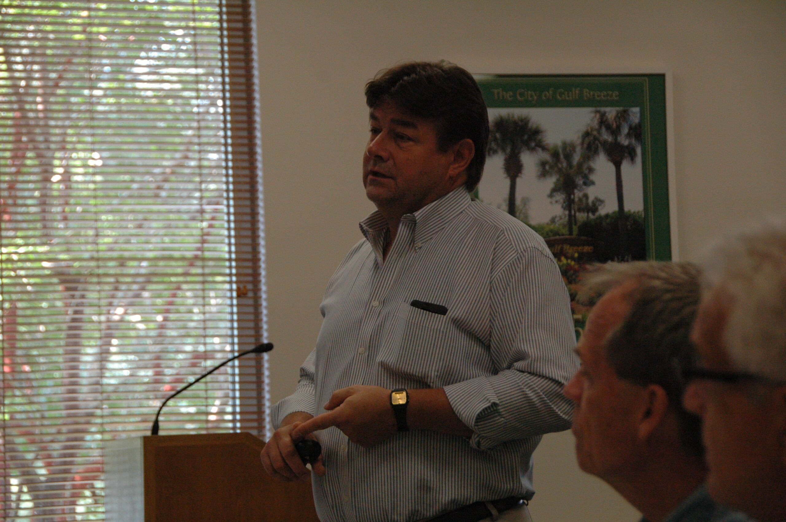 Gulf Breeze Police Chief Robert Randle discusses his department’s budget request July 26 with members of the Gulf Breeze City Council.