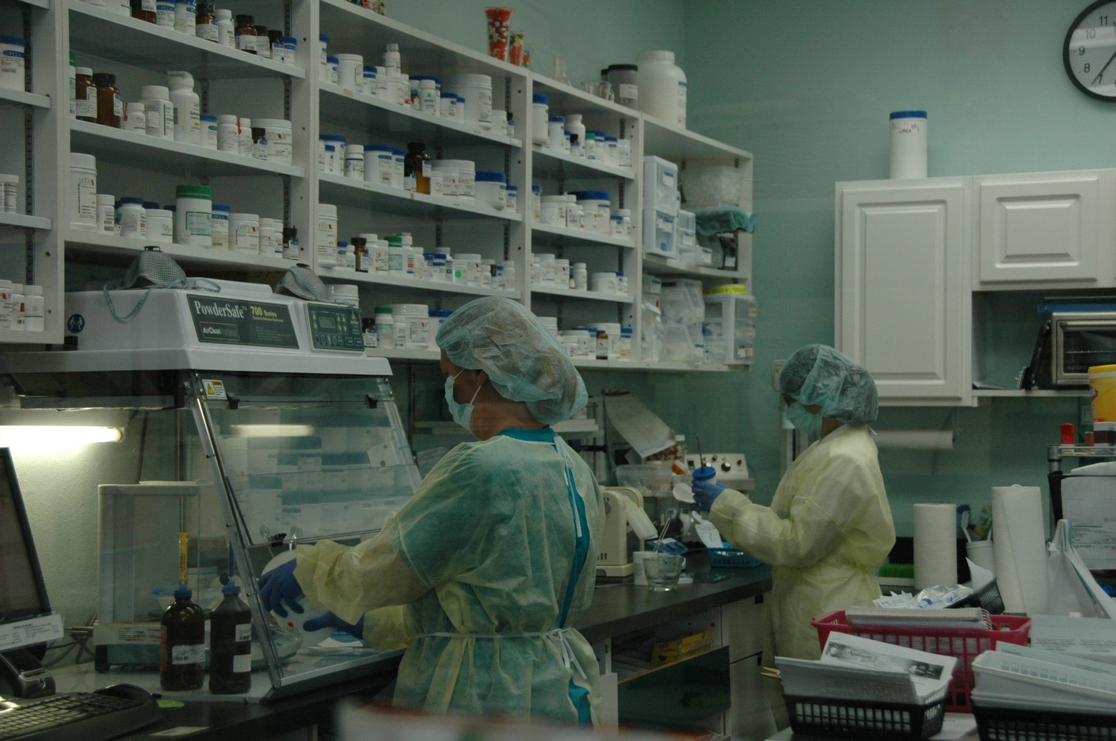 Pharmacy technicians prepare compounded medicines in a sterile environment at Gulf Breeze Apothecary.