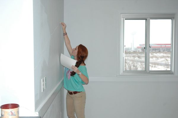 Haiden Redmond outlines the sand dunes that will become part of the mural at the Navarre Beach Sea Turtle Conversation Center.
