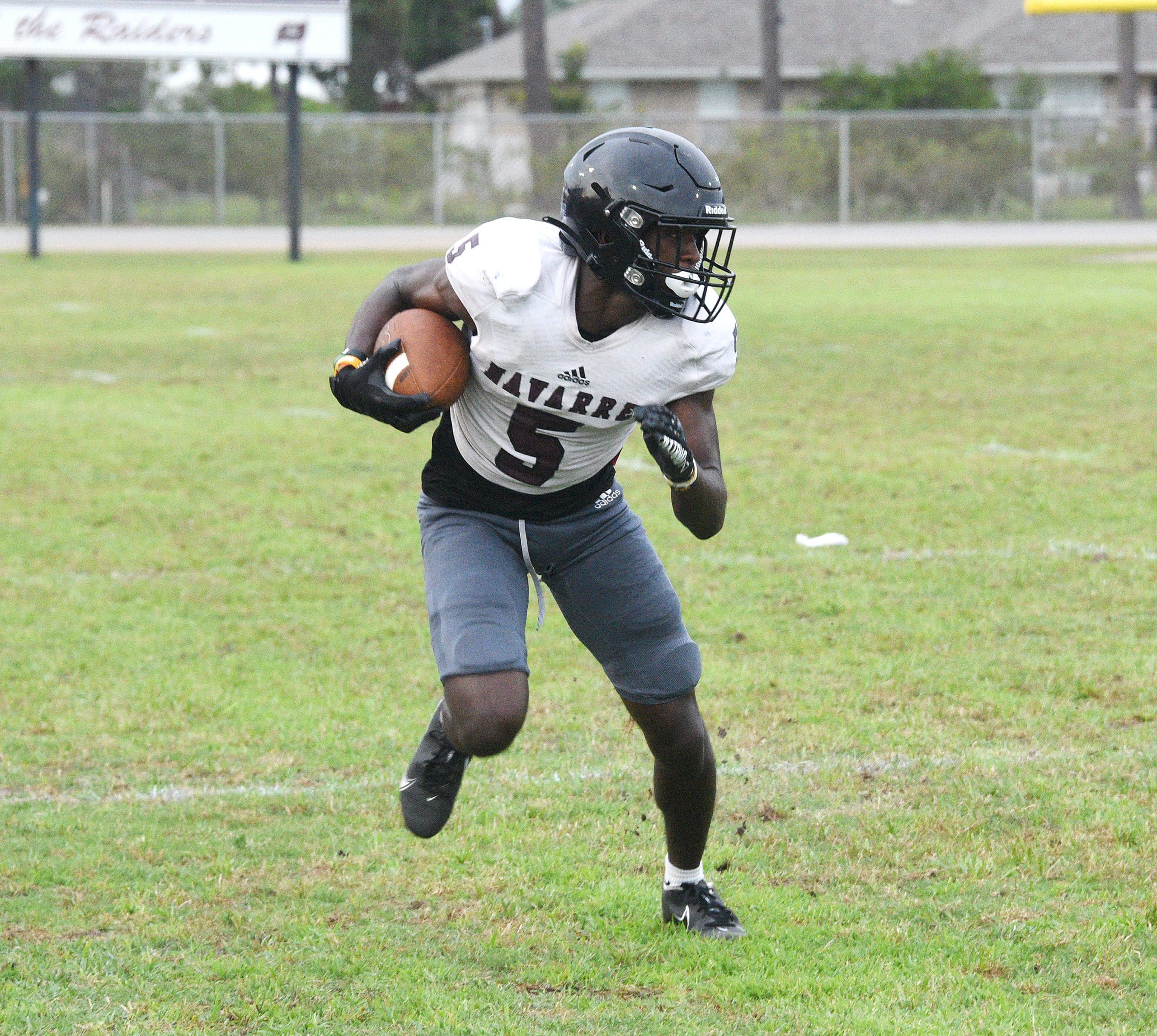 Tyrell Marshall runs with the ball during a scrimmage last month.