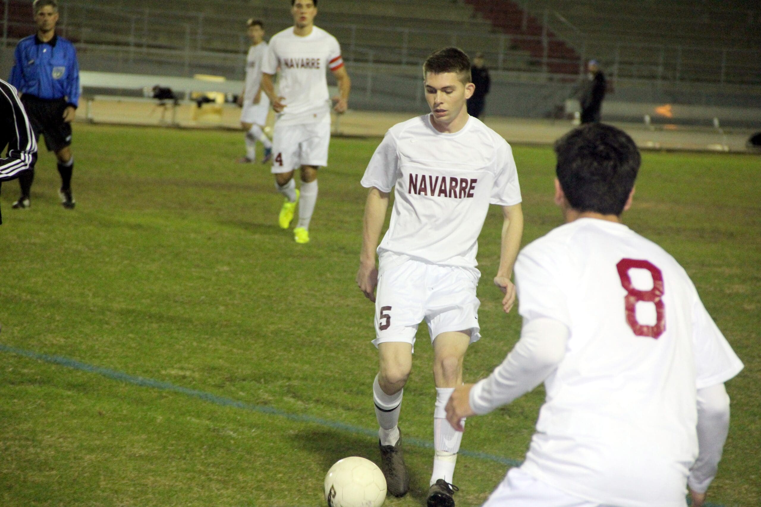 Cody Whie moves the ball into midfield