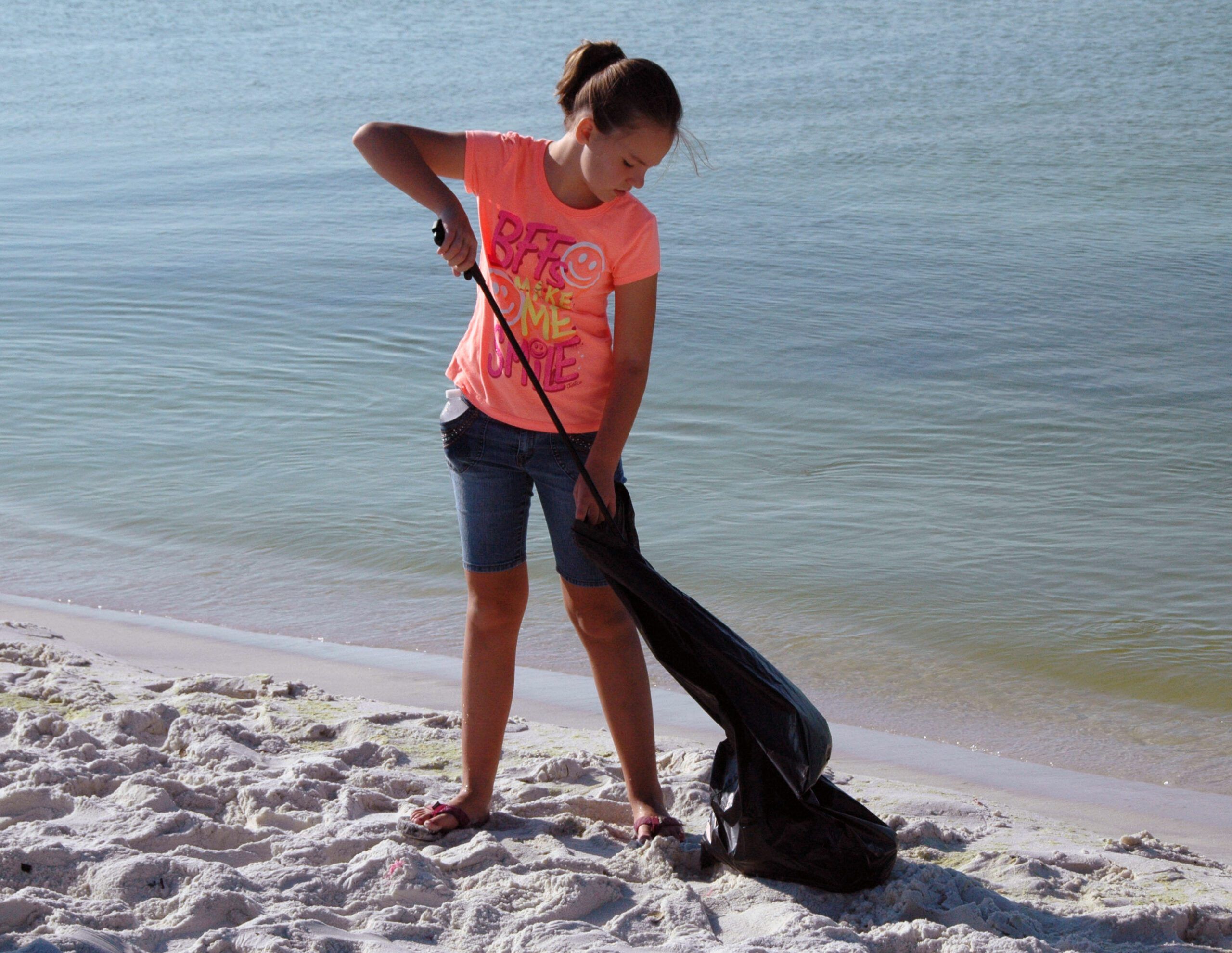 Riley Perry from Girl Scout Troop #934 in Milton volunteered July 5 during the Navarre Beach Sea Turtle Conservation Center Trash Bash on Navarre Beach.