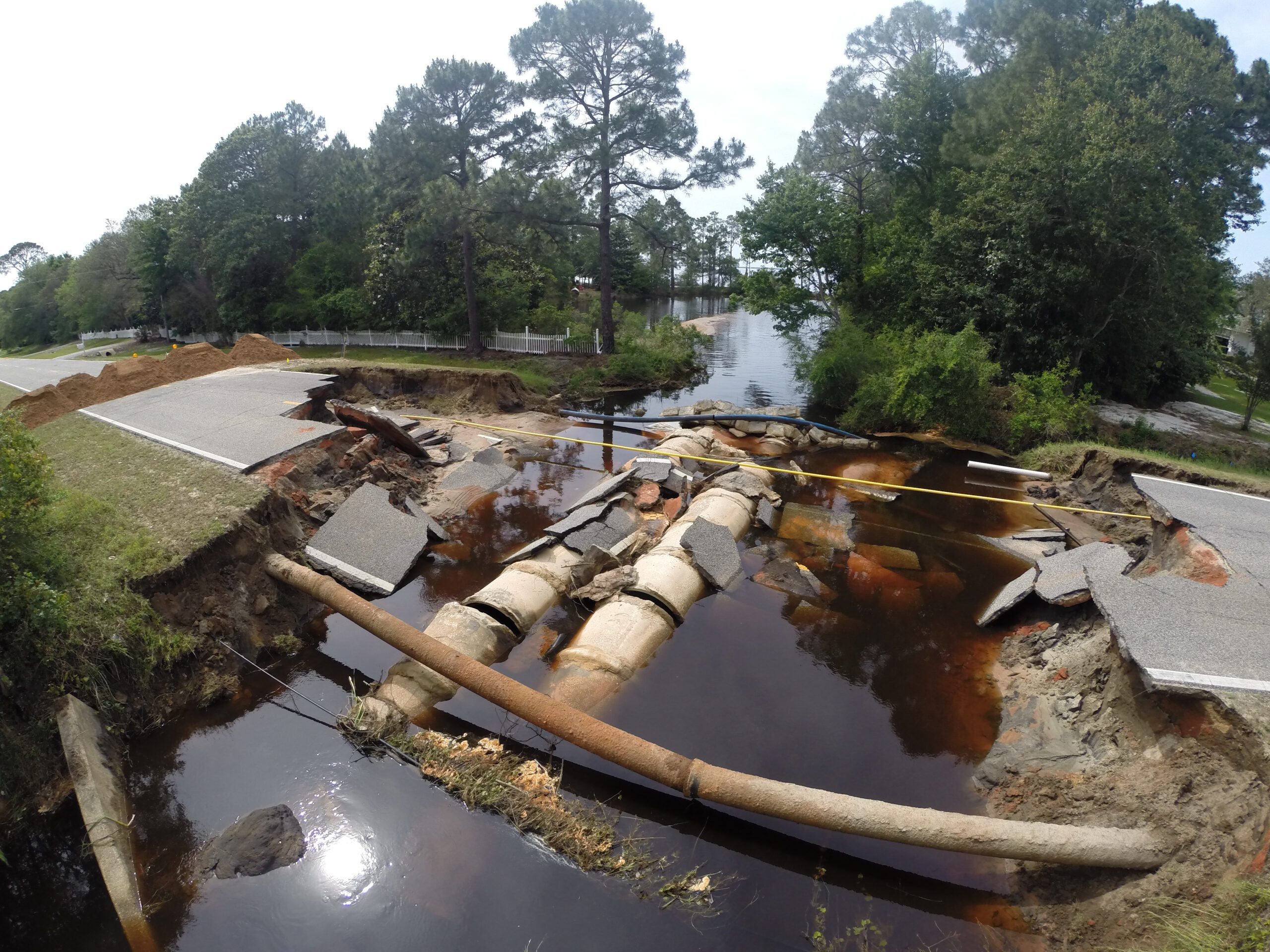 Floodwaters do more than damage homes and businesses and make roads and streets look like ponds or rivers. The power of the rushing water can damage roads and also the utility lines under them.