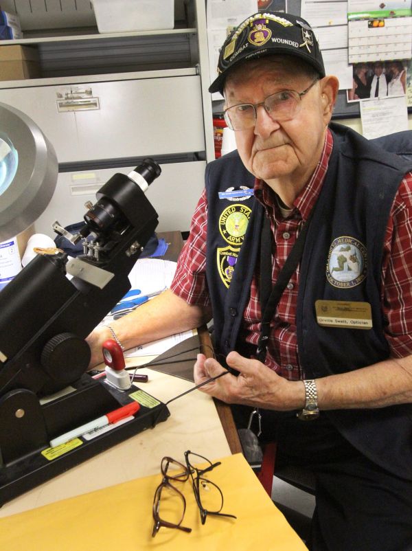 Orville Swett a 91- year-old World War II veteran and retired optician, fixes a pair of glasses at the William V. Chappell Jr. VA Outpatient Clinic in Daytona Beach, Fla. Swett has volunteered 38,000 hours in 30 years at the clinic.